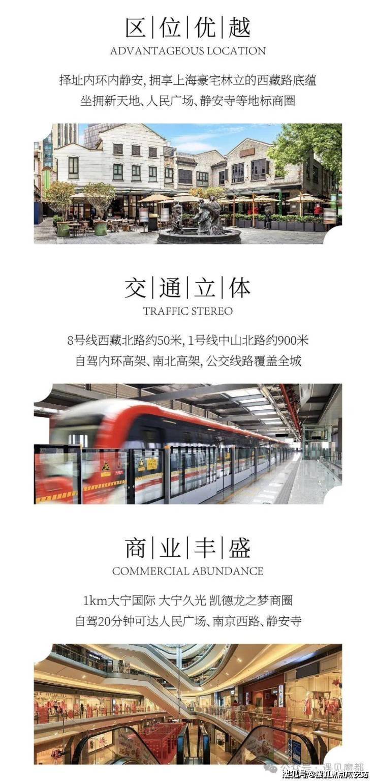 从城市规划来看,静安正围绕 “一轴三带” 布局(以南京西路为发展轴,打造静安寺 - 南京西路高端商业带、苏河湾滨水文化带、大宁 - 彭浦科创产业带),而繁花静安恰好处于 “一轴三带” 的交汇核心。项目距离南京西路商圈仅约 800 米,步行 即可抵达恒隆广场、中信泰富、梅龙镇广场 “金三角”,这里汇聚了 LV、Gucci、Prada 等国际奢侈品牌,以及米其林餐厅、高端写字楼,是上海高端消费与商务办公的核心;距离苏河湾滨水区约 1.2 公里,目前苏河湾正加速推进 “滨水空间改造”,已建成苏河湾万象天地、上海总商会旧址、天后宫等文化商业地标,未来将成为 “上海城市会客厅”;距离大宁国际商务区约 3 公里,驱车即可抵达,这里集聚了腾讯、字节跳动等科创企业,产业活力与人口红利持续释放。
