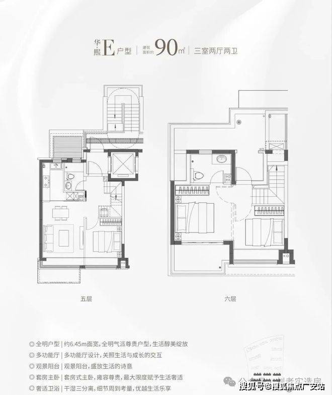 市面上90㎡左右户型两房居多,华发海上都荟售楼处电话:400-9692-958【官方认证】✅✅✅建面约91㎡直接3房一步到位,并且有2卫配置,主卧进阶套房,功能性远超同价位竞品!