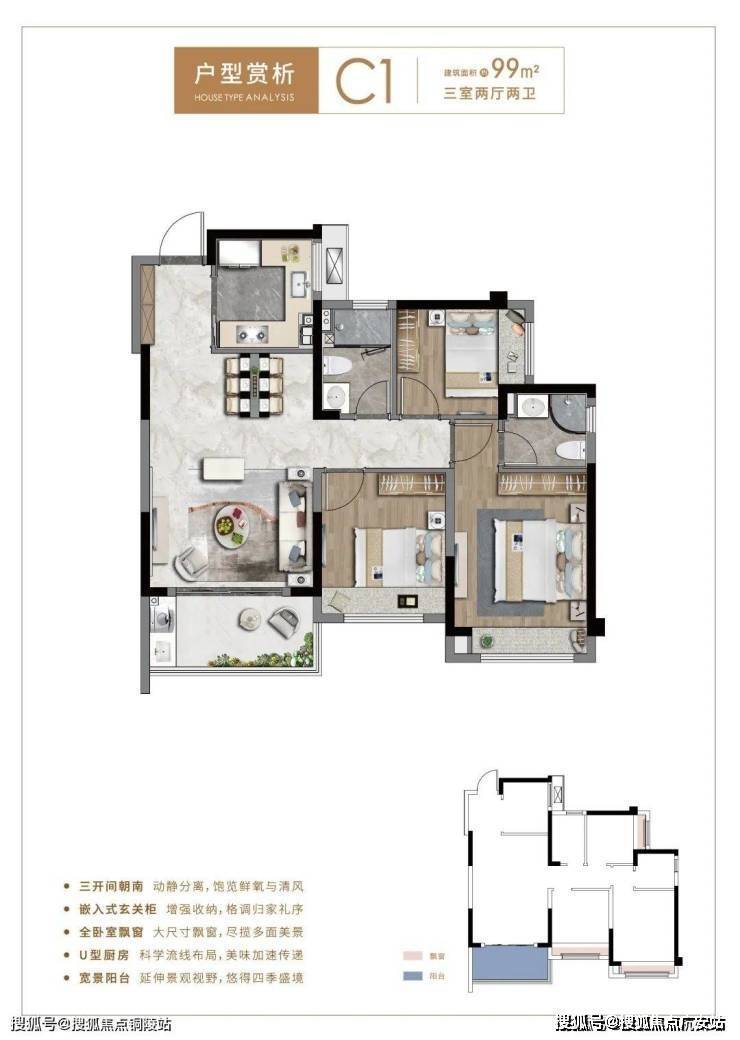 瞰景高层/73㎡二房一卫,85㎡、99㎡三房二卫