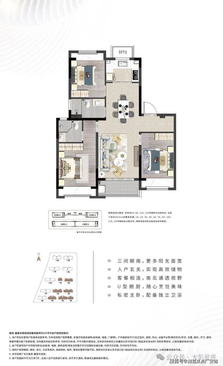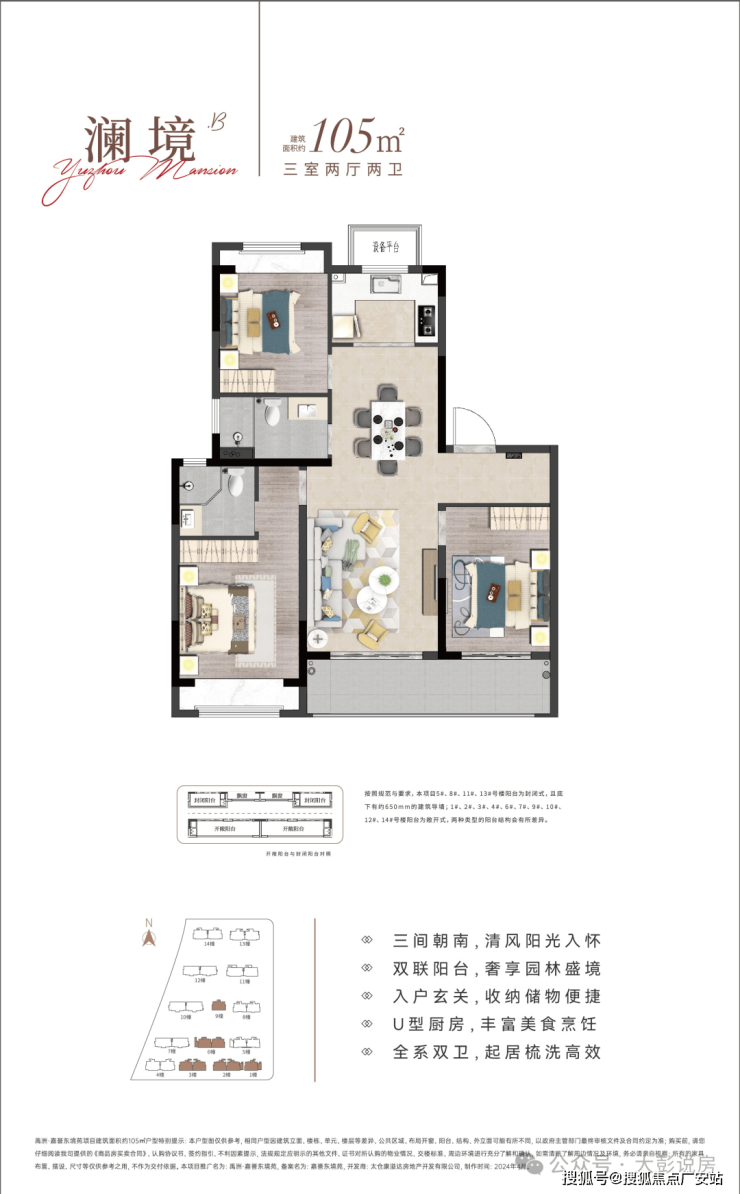 约105㎡ (三房二厅二卫) 双阳台版