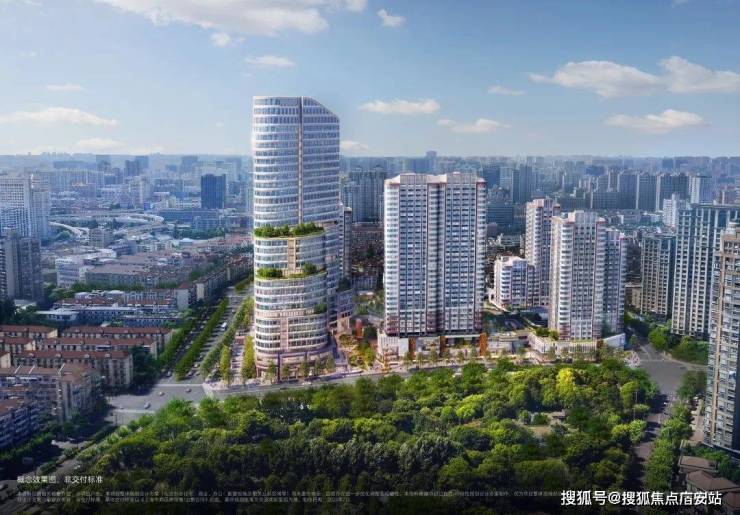 外立面方面,项目整体将打造为新海派建筑地标,设计有弧线阳台、45度玻璃、双层塔冠等,设计灵感来源于蔓楼兰;立面色调方面,将采用珐琅彩色调,具体或为珍珠蓝铝板+红色纹理+金色线条,具体材料及配色还在最终确认。