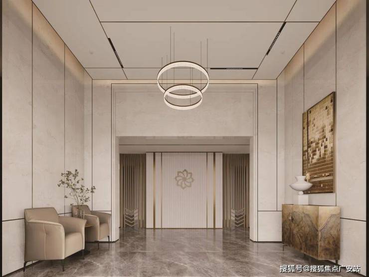 首层大堂与电梯轿厢品质感拉满。