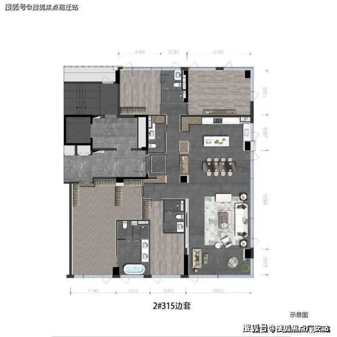 云合印中心:在售面积315—350㎡、一梯一户、开敞式阳台精装修交付、总价780万起
