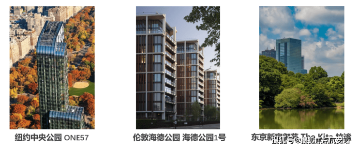 世界上的豪宅大都集中在公园周围,例如纽约的one57,紧邻中央公园;伦敦的海德1号,紧邻海德公园等。