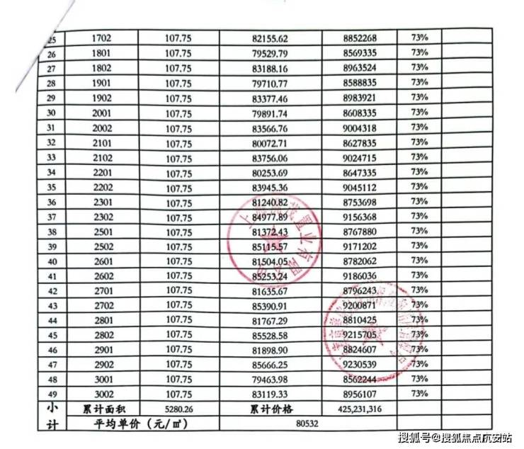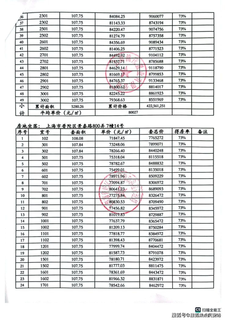 一房一价表: