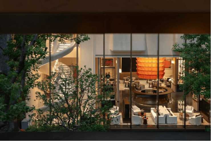 不仅如此,约1700㎡下沉式会所还藏着惊喜。下沉庭院花园,宛如一座隐藏在社区中的自然秘境,上下联动的多维空间营造,通过巧妙的地形设计,将地面景观与下沉空间有机结合,形成了一个立体而丰富的景观体系。