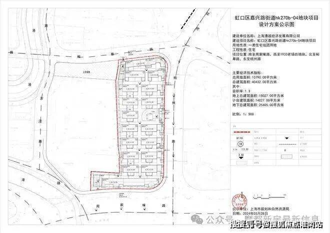 2023年10月26日,上海市虹口区嘉兴路街道hk270B-04地块历史风貌保护项目实施主体遴选结果公示,最终由上海市漕河泾新兴技术开发区发展总公司(临港集团)及杭州燚乐实业投资有限公司(越秀)联合开发团用地,容积率1.3,建筑面积14027平方米,地块内需要保留的历史建筑规模约4400平方米,均为里弄建筑。