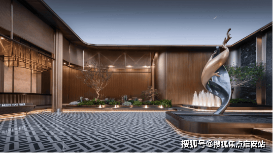 通过对仪式景墙、跌水、雕塑小品、归家廊道的美学定制,转译成独属于静安玺樾的艺术形态语言。