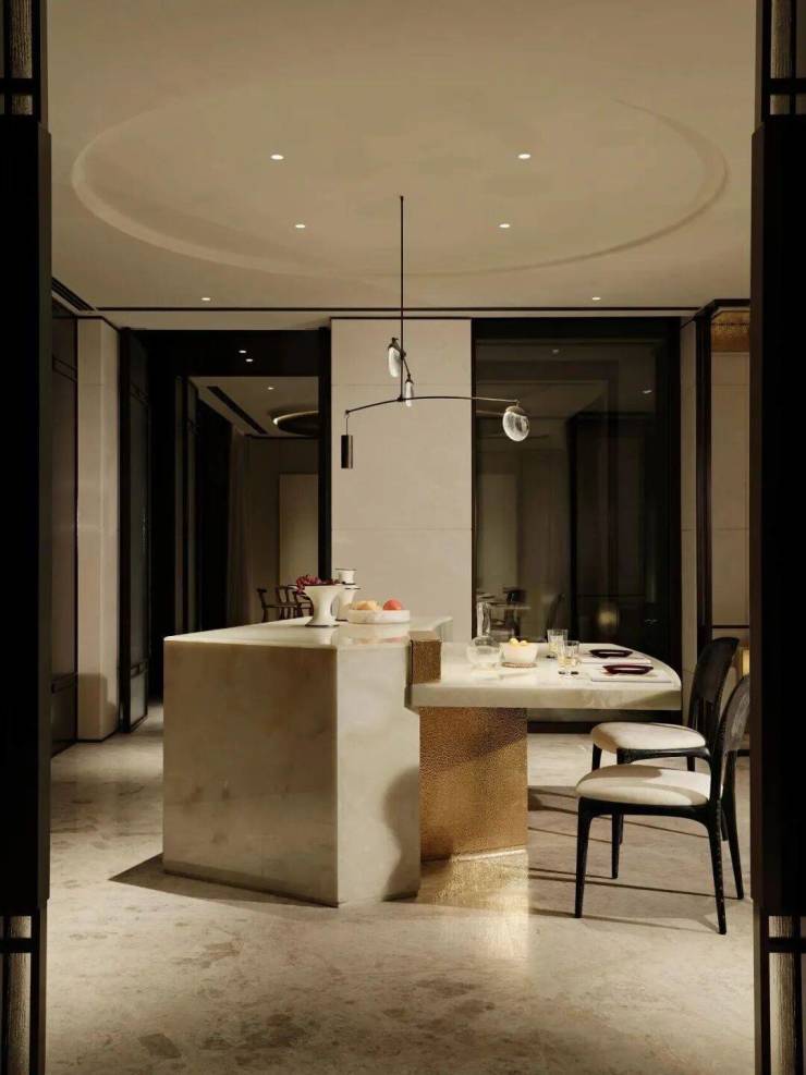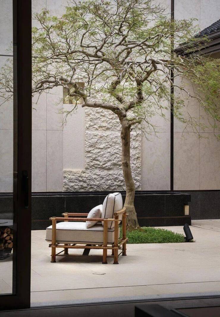 契合中国传统院落居住哲学理念,以“外紧内松”空间设计手法,对风貌别墅空间尺度进行当代拓新,让空间服务于生活。外紧-通过外部百年巷道肌理活化、建筑错落排布景筑交融,打造美而精的体验;内松-宅院内以多重庭院、立体花园、大落地窗等实现室内尺度拓新,给家人更多停留空间、打造建筑会呼吸的松弛感。