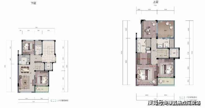 还有它的上叠,一般叠墅户型都是把客餐厅这类活动空间放在楼下,休息间放在楼上,如此图:
