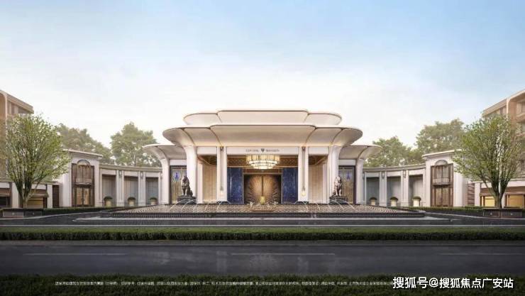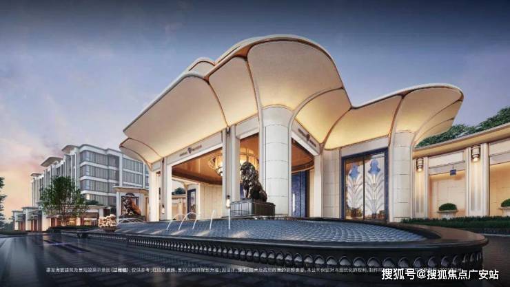 「玉兰门庭」摩登飘逸,环抱式落客前场,大师定制非遗掐丝珐琅门钹,流转温润光华,敬呈归家尊崇礼序,自此启幕生活的华贵序章。