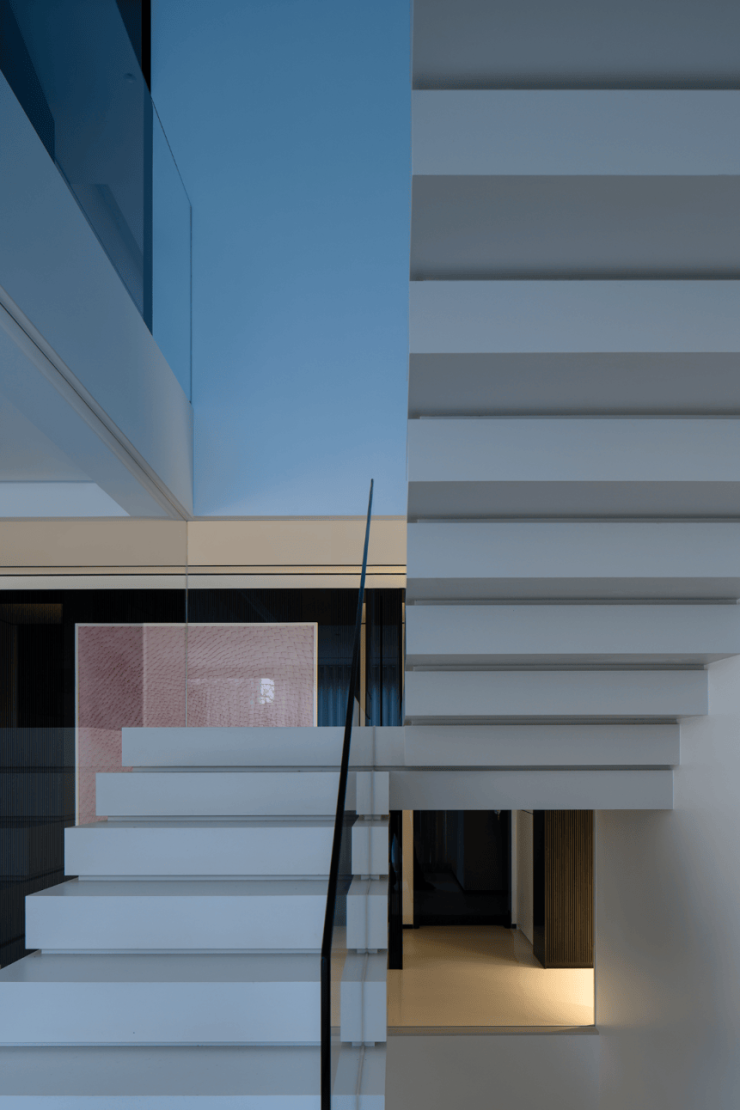 楼梯区完全被几何占据,自然光恰到好处的平衡,进一步呼应着空间的心境,衔接了生活和居所。