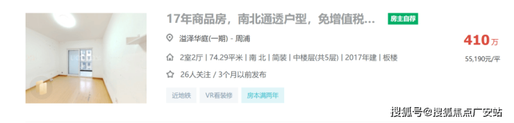 根据链家网络上的数据显示,溢泽华庭一期一套建面约75㎡的2房,总价约410万,挂牌均价约为55190元/㎡。仅比二期的挂牌均价略低一点。
