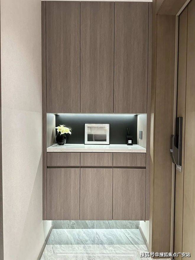 入户玄关更是设计了大量的收纳空间。底部架空,可以用来摆放鞋子,并设置有嵌入式灯带,整体的氛围感拉满。浦发上品售楼处电话:400-9692-958(一对一解答,欢迎咨询)