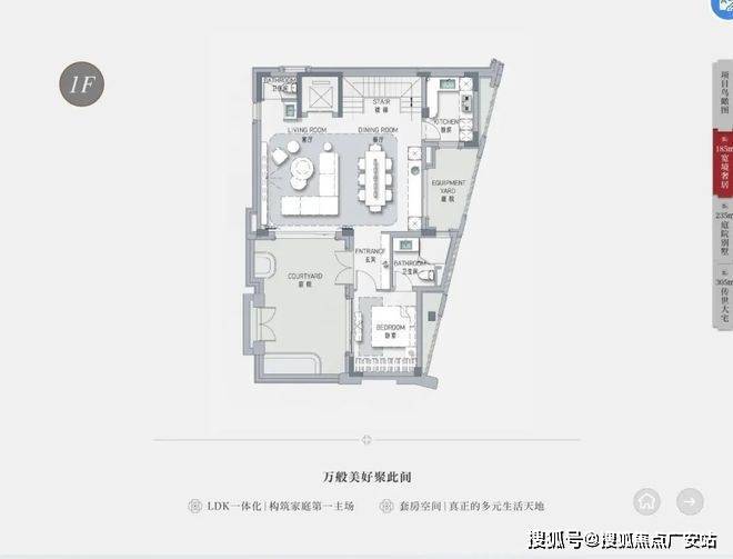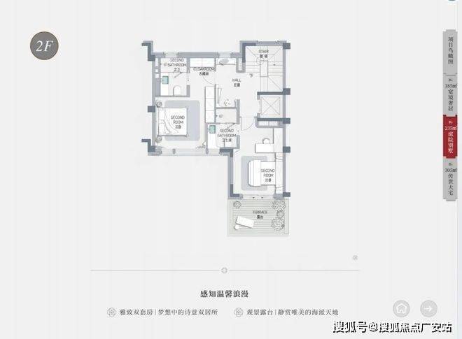 :容积率仅1.35,纯墅区设计,建筑限高12米,总户数70套,涵盖联排、叠加两类产品,建面约185-305㎡,联排总价约4700-6400万级,叠加总价约2700万起
