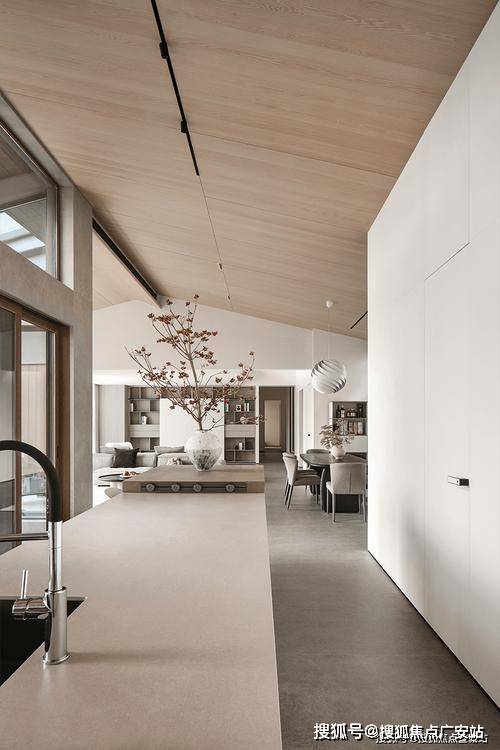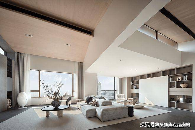 大尺度客厅保证了视野的开阔,不同物质在空间内穿插,每一处角落都是居住者的生活写照。