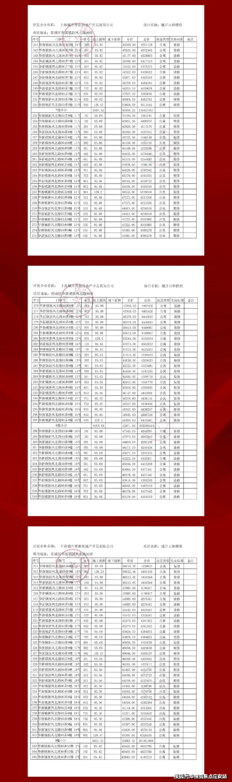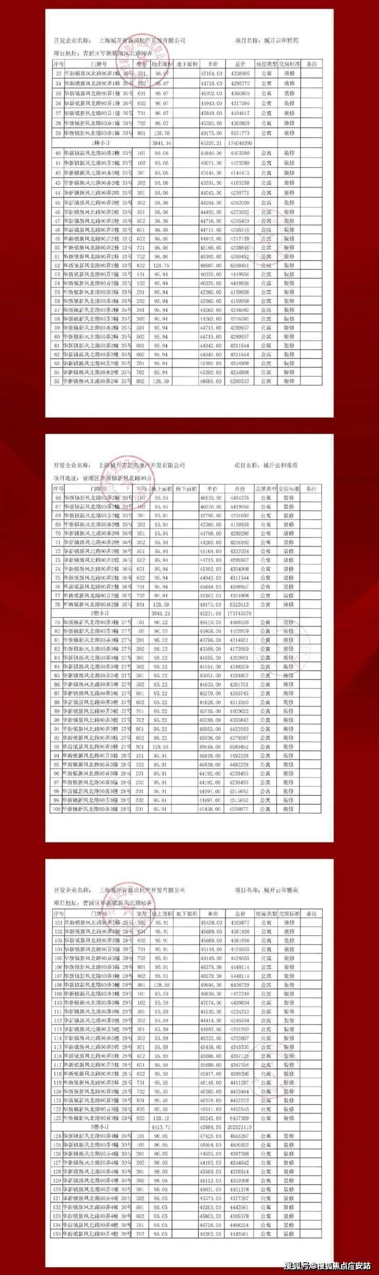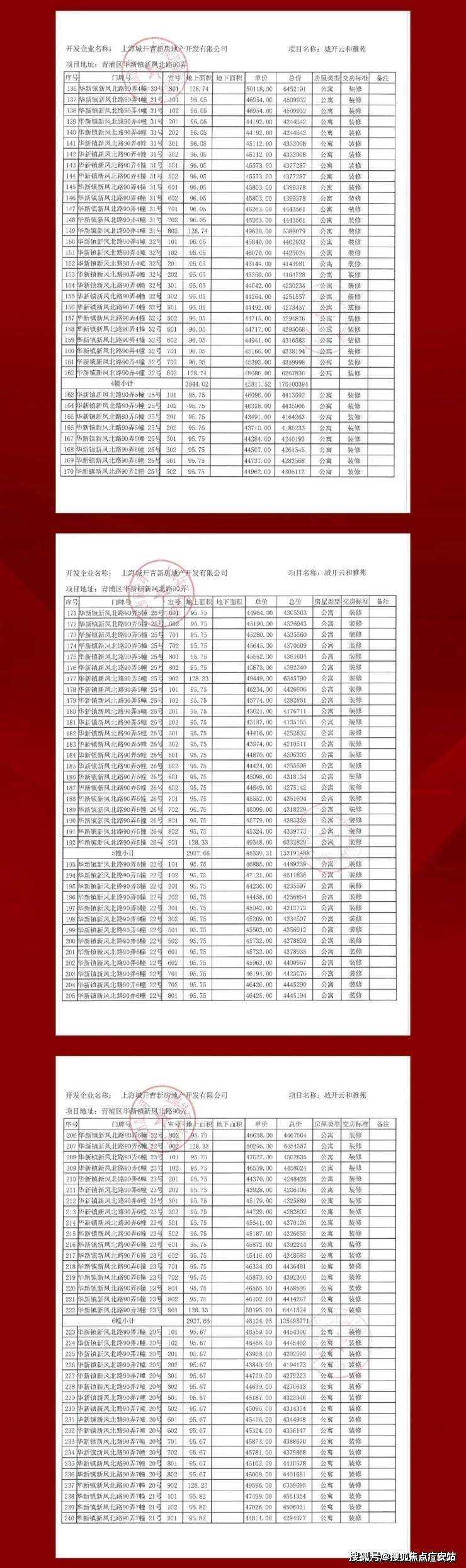 完整一房一价表如下: