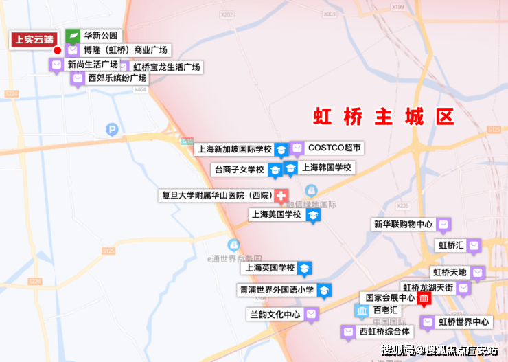 上实云端所在的青浦华新,与虹桥前湾地区核心直线距离不过2公里,可谓是近水楼台先得月。