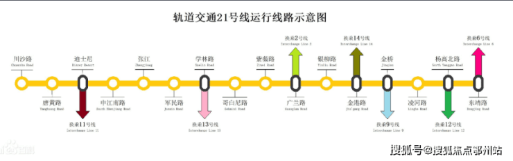 21号线申江南路站(直线距离约一公里,2022年已开工)在规划时主要参考原迪士尼线线位,串联起吴淞国际邮轮码头,吴淞客运中心、高桥、外高桥自贸区、金桥、张江、康桥、迪士尼、上海东站、浦东国际机场等板块,接轨多条地铁南北路线。(数据来源:百度百科)