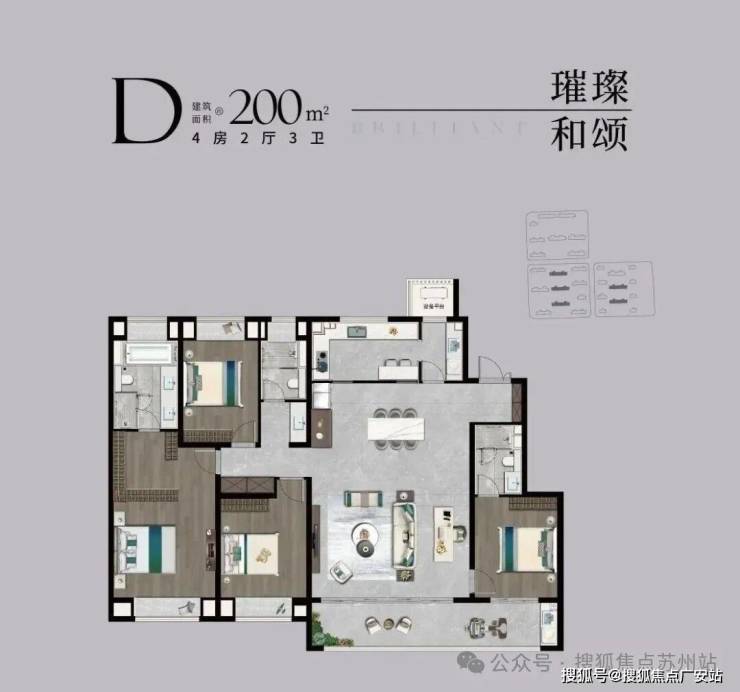【宽奢四室】南北通透4房,家人独立房间,启幕品质人居