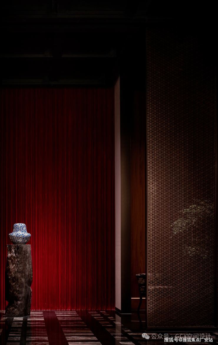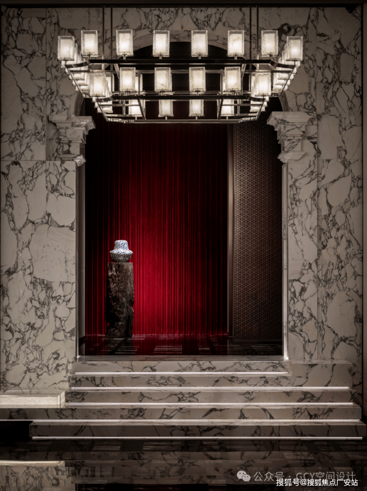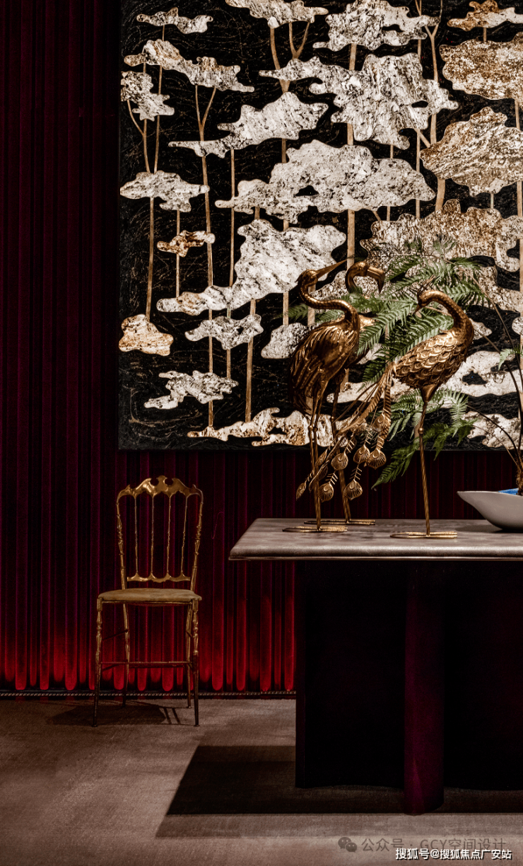 这是一处具有艺术雅致与复古奢华于一体的美学空间,璀璨恍然如梦,每一处停留与凝望,都是对自身喜好的印证,用现代的材料和工艺展现了有地域属性的往日繁华盛景,通过空间叙事营造强烈的剧场感,用不同空间的艺术化处理、尺度的收放、材质的呼应、光影的变换,制造出强烈的视觉效果和独特的美学体验感。
