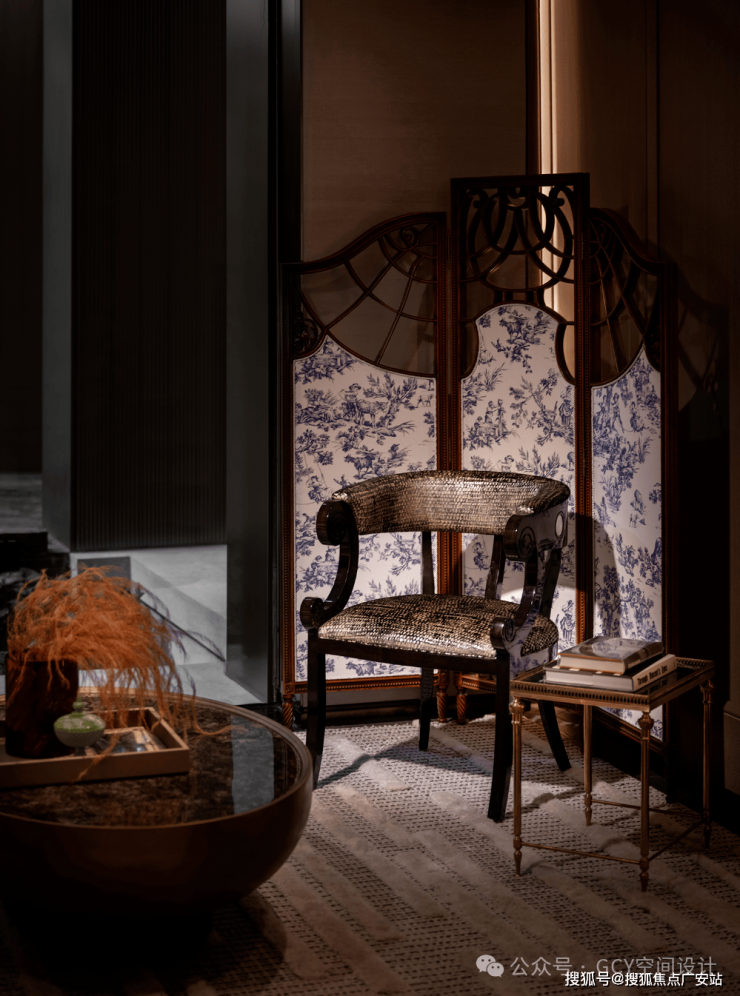 通过色彩对比、艺术陈设、材质搭配、图案装饰,营造出复古奢华的视觉与感官体验。