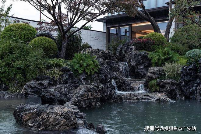 在会所中央,设计了充满中式韵味的四水归堂:屋檐四面围合,中间种植舒展松树,承载着中国传统文化中“天人合一”的理学思想。雨季时节,水从四面的檐壁汇聚,寓意着财源风水,也寄托着家人团圆的美好愿望。