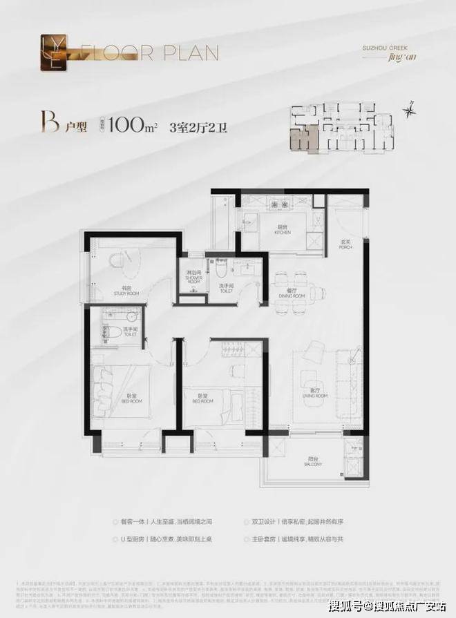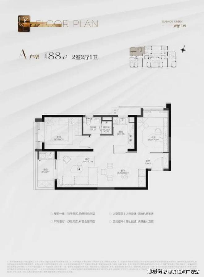 这个户型非常适合年轻小家庭上车!尺度上看,独立的玄关,仪式感与收纳功能兼具;餐客厅一体化+U字型厨房,布局合理;两房设计恰到好处。同时很好地控制了总价,千万级预算买进苏河湾核心位置的绝版机遇,地段控闭眼冲!