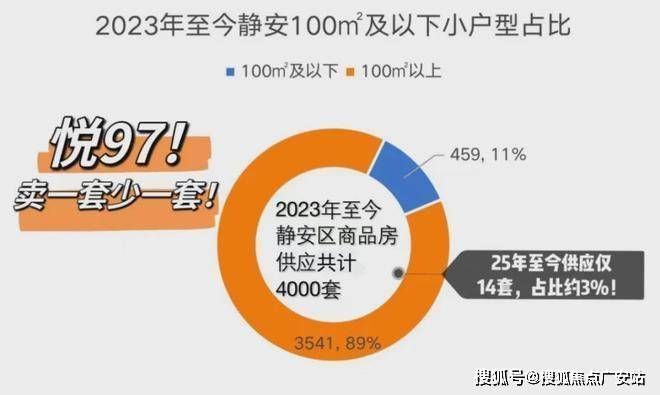据克而瑞数据库显示,2023年至今的三年间,静安100㎡及以下户型,仅占静安供应总量的10%左右!25年至今,仅且供应了14套100㎡以下小户型,骤减至3%,实在太少!