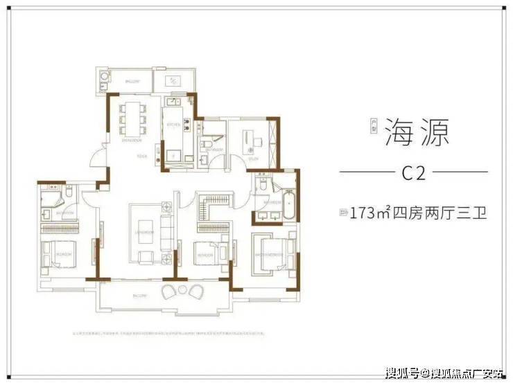 主力户型:精装高层,建筑面积约144㎡(三居)、173㎡(四居),均为一梯一户设计,层高3.1米