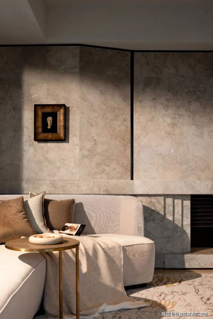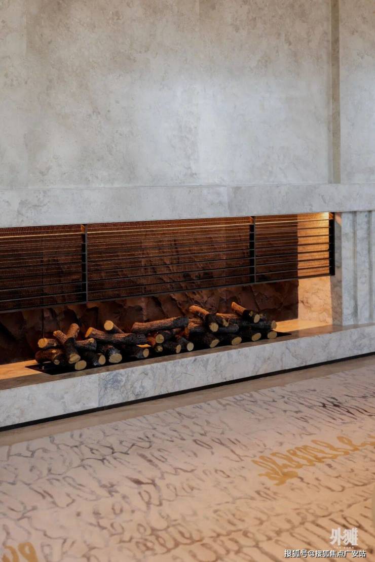整个客厅内,聚集视觉焦点的是石墙下的火炉,它沿袭了无间设计吴滨对火焰元素的偏好,亦是空间的精神象征和升华。