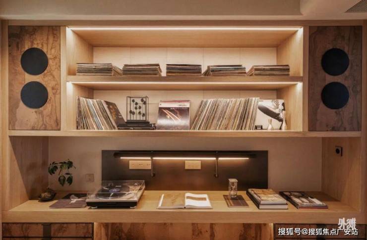 音响融入上方柜体,释放了细致分隔的陈列空间。