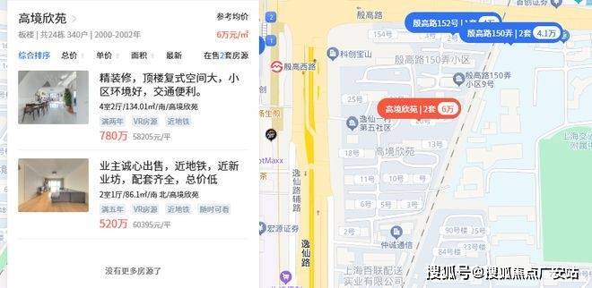 项目就一栋楼,与2000年左右建设的高境欣苑在一个大社区,目前链家上高境欣苑挂牌价为5.8-6万/㎡。