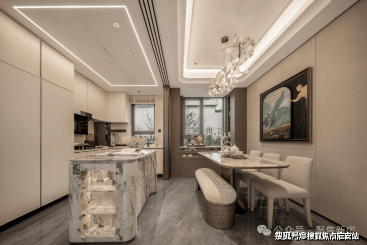 【海上·清和玺】希望业主的每一次归家,都能有属于自己的社交空间。整个前厅的接待空间不是一个过渡空间,而是一个真正为归家营造惬意分享的生活场。