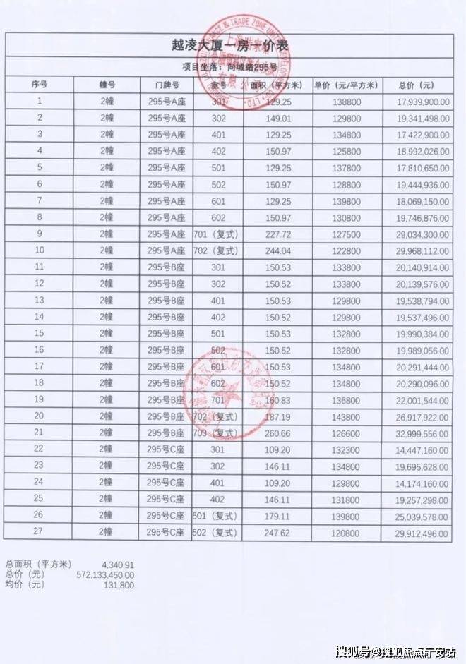 同样以4楼为例,B座402室户型均价约12.98万/平。