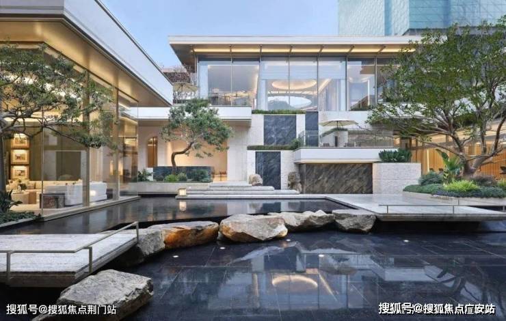 【下沉庭院】庭院巧妙利用约6米的高差,营造出丰富的空间层次感,中央布置大面积立体镜面水景,如诗如画。