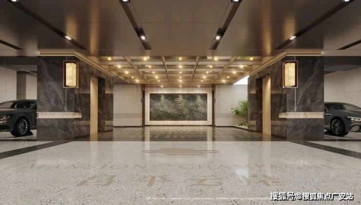 项目一楼设计星级入户大堂!挑高穹顶之下,天然石材与金属线条,交织出当代艺术馆般恢弘气度!