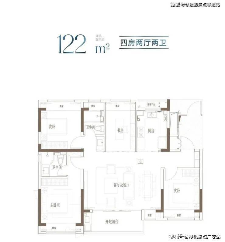 户型特点:宽境4房,拓宽空间尺度;大开间、进深短,通透采光;主卧独立卫浴,优雅随心的寝居感受。