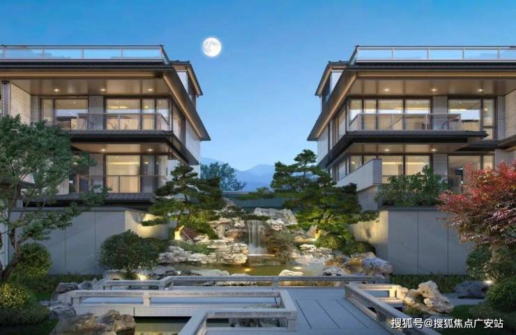 久映颂月府的投入远不止这些奢石、古树,从排屋建筑外立面也能看出一些隐形成本,伊朗进口的蓝眼睛石材,大面积落地玻璃,香槟色铝板,就连北向立面也是如此。