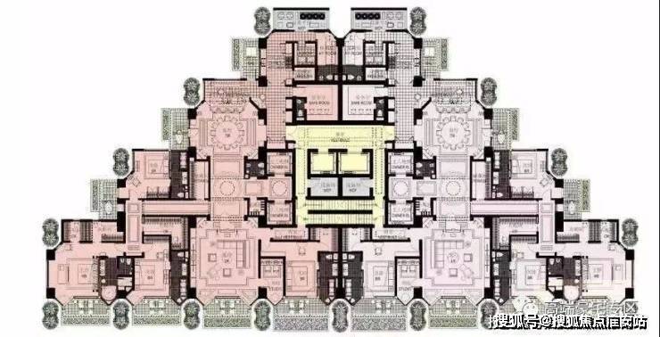 外立面以“水晶幕墙”为设计核心,采用超白Low-E夹胶玻璃搭配香槟金铝合金线条,6米挑高入户大堂配天然奢石饰面。创新“三段式”造型,底部石材基座稳重大气,中部玻璃幕墙最大化江景视野,顶部金属格栅勾勒天际线,兼顾抗风压与光影美学,彰显现代顶奢质感。