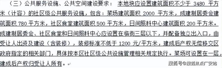 另外,规定各种公共服务设施不得少于3490平方米,其中包括,菜场、居委会、社区食堂等配。