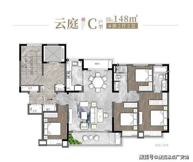 面积户型:约138㎡4房2厅2卫