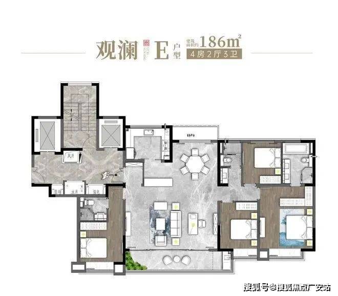 其主力户型为建面约 138-186㎡的 4 居室。
