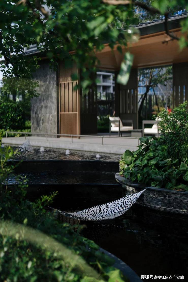 三进礼序的星级酒店式归家礼序,具有很强的仪式感。进入园区,多处叠水与乔木、灌木共同营造的归家空间。