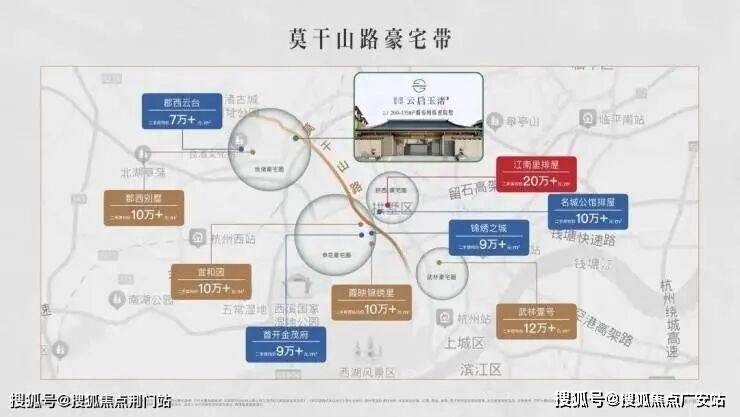 以白马公寓、武林壹号为南端的莫干山路豪宅带,和以桂花城为南端的古墩路豪宅带,延伸交汇出一座云启玉渚。