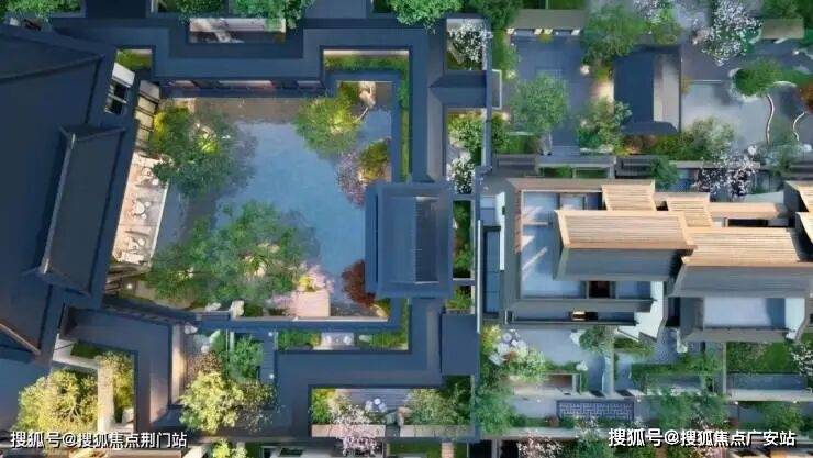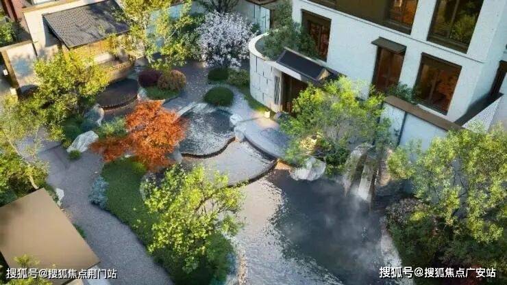 园林景观上,以西湖郭庄和《溪山行旅图》为造园蓝本,引良渚溪涧地貌,植入百年古树和近百种植被,营造“游园五境”的立体山水画卷,同时在画卷中嵌入约2700㎡的下沉式庭院会所,将景观巧手绘制成天空之下的会所。