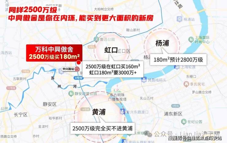 于2500万级购房者,同价位下,中興傲舍建筑面积约180㎡大三房,比虹口、杨浦新盘多出约20㎡空间。要知道,虹口同面积段新盘总价已冲到3000万+。