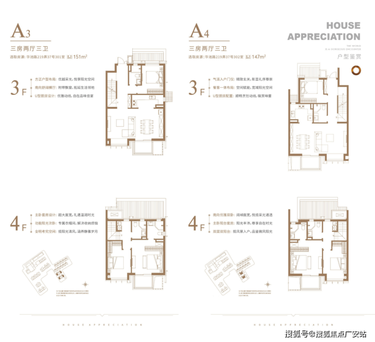 上叠户型,共有三个主力户型,建面约155㎡、151㎡