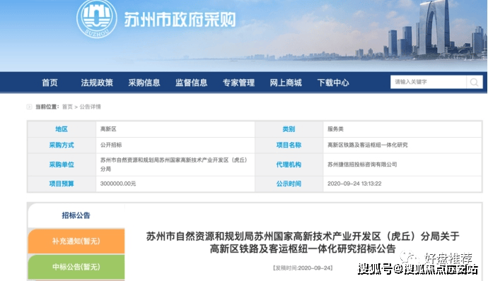 9月24日,苏州市政府采购网发布了《高新区铁路及客运枢纽一体化研究招标公告》,研究招标中,明确提及了科技城站综合枢纽的定位。