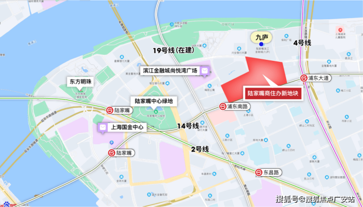 项目就在小陆家嘴核心,瞰江豪宅九庐的南面。位于14号线浦东南路站与浦东大道站两站之间的地块,将会建设一座涵盖办公、市级文化设施、豪宅、商业的综合体。